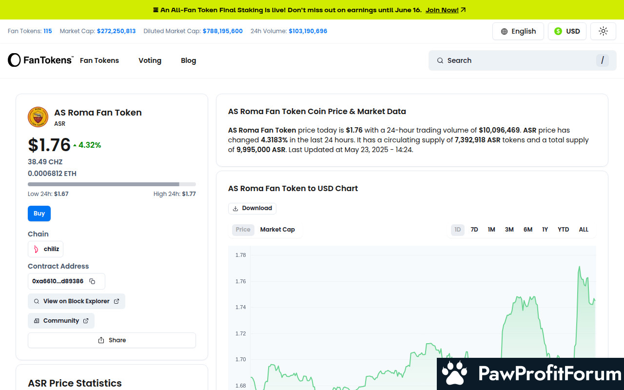AS Roma Fan Token (ASR) has carved a niche in the cryptocurrency landscape, intertwining the passion of football with the dynamism of blockchain technology. This token, part of the Socios.com platform, allows fans to engage with AS Roma in unprecedented ways, leveraging the power of blockchain for fan engagement and governance.In July 2020, AS Roma Fan Token was launched in collaboration with Chiliz, marking the club's entry into the blockchain space. This partnership enabled fans to purchase ASR tokens using Chiliz (CHZ), an ERC20 utility token on the Ethereum blockchain. The launch was part of a broader trend where sports clubs began exploring blockchain to enhance fan interaction and monetization.