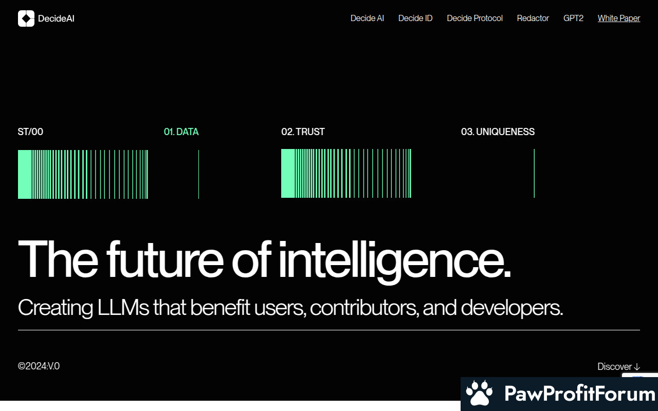 Decide Protocol: A platform that coordinates artificial and human intelligence to annotate, train, and continuously improve specialized LLMs and datasets using Reinforced Learning with Human Feedback (RLHF). Decide ID: A unique methodology (Proof of Personhood or PoP) to verify and trace contributors and their credentials, ensuring high-quality data. Decide Cortex: A platform providing access to pre-trained LLMs and datasets for clients or developers.