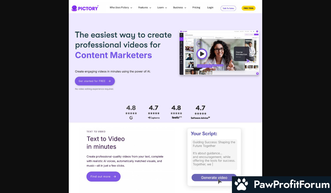 Pictory AI is a video creation and editing program for creating engaging videos across popular social media channels. How about converting a 2,000-word blog post into a crisp 3-minute video in about 15 minutes - something that would typically take hours with traditional editing software?