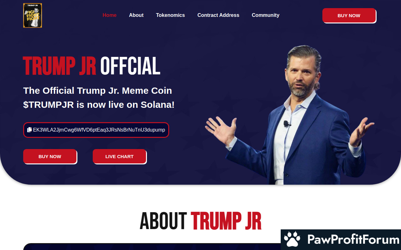 Following in his father’s footsteps, Donald Trump Jr. embodies courage, determination, and the spirit of leadership. Like $TRUMP, $TRUMPJR is more than just a token—it’s a symbol of strength and an unstoppable movement.