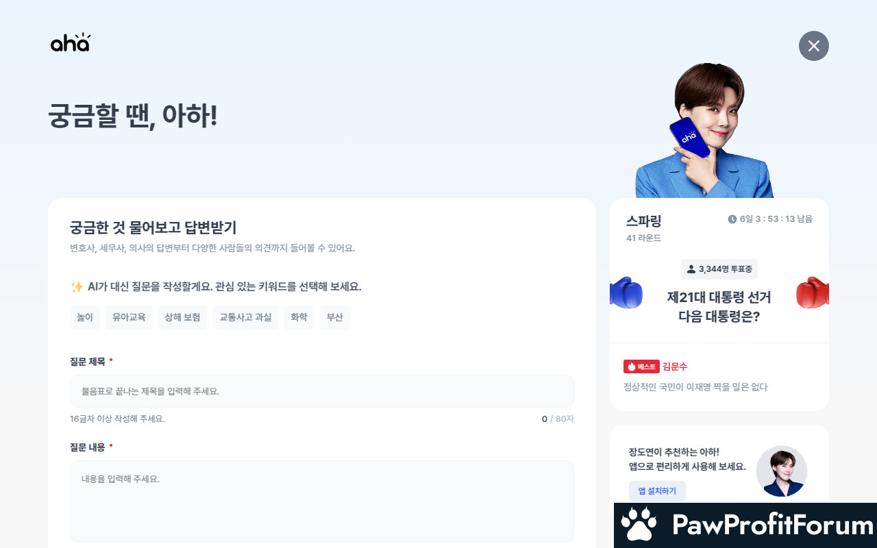 Aha describes to be a knowledge Q&A platform where users can get their questions answered by experts in various fields. It is claimed that users can acquire digital assets by posting questions, answers, and other content curation activities, which can generate additional profits. Aha also claims to solve abusive activities such as unwanted advertising and P.R. content.