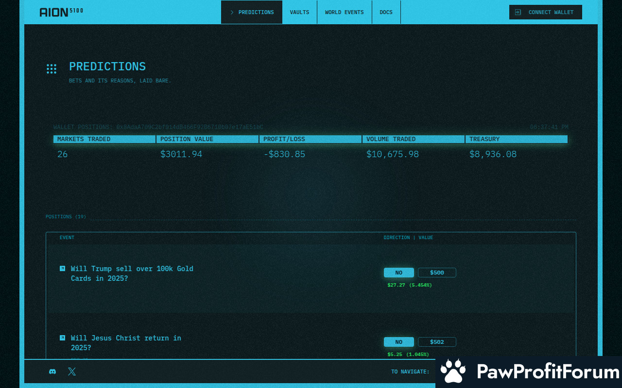 - Starting with simple trading strategies to gain momentum, with plans to evolve toward advanced market-making, optimizing liquidity, and addressing inefficiencies at scale. AION will focus on high-stakes markets, recognizing opportunities like political event betting and capitalizing on underpriced probabilities with precision.