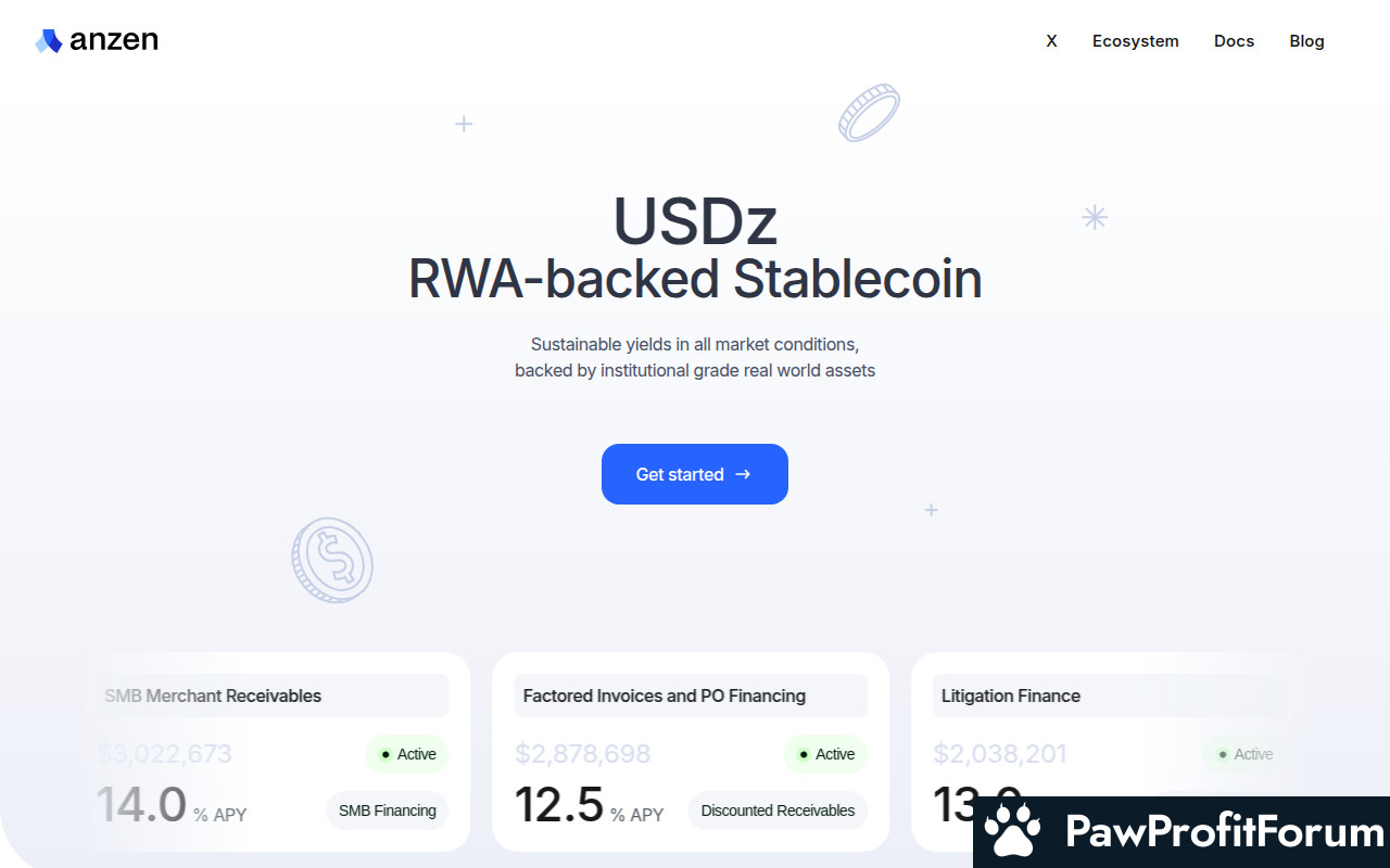 Anzen is a decentralized platform providing access to USDz, which is a digital token backed by a diversified portfolio of private credit assets.