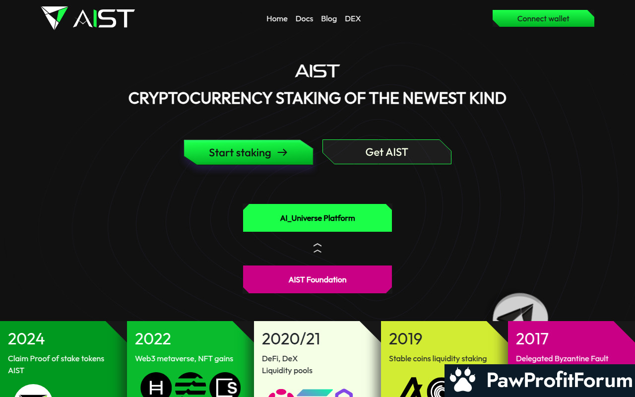 AIST is a token that runs on Binance Smart Chain as a WEB 3.0 solution with the ability to stack, accumulate and exchange both within the native network,will be launched in other networks through bridges. AI_universe ecosystem will be built on decentralized AI services and products.