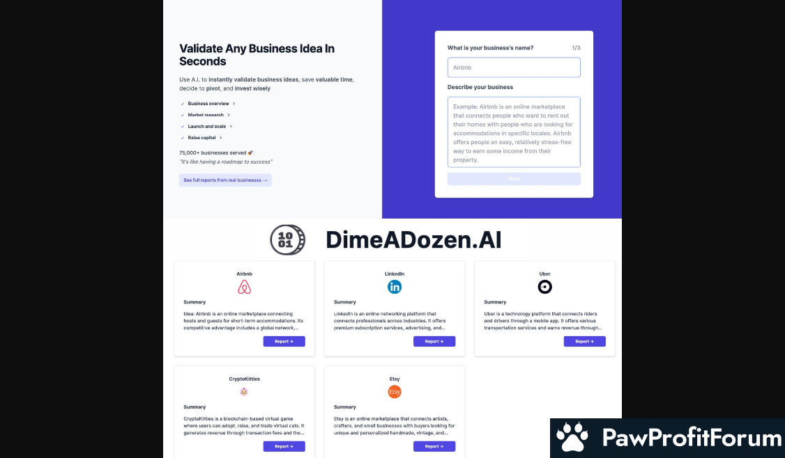DimeADozen AI is a powerful, versatile, and user-centric AI product designed to help entrepreneurs validate business ideas in seconds.