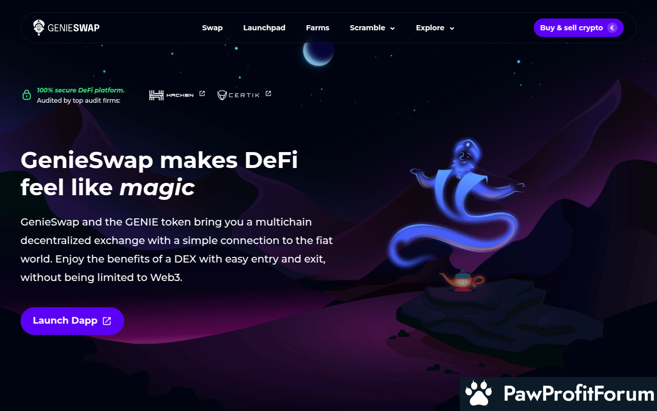Launched in 2023, GenieSwap is the go-to for transparent, trustless transactions across swapping, staking, and project exploration. With its user-centric design and commitment to decentralization, GenieSwap is your trusted partner in navigating the complex world of decentralized finance.GenieSwap offers a comprehensive DeFi experience, facilitating effortless swaps across multiple blockchains. It features a unique decentralized launchpad with a seven-level on-chain referral system and staking opportunities through GenieSwap Farms, enhancing token utility and rewards.