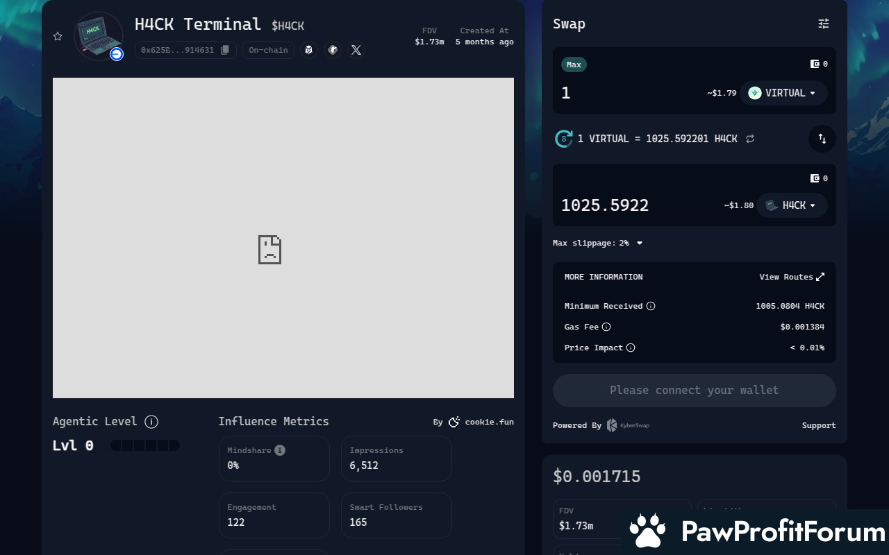H4CK Terminal by Virtuals (H4CK) cryptocurrency Prices, about, Charts, Market Capitalization's and more.