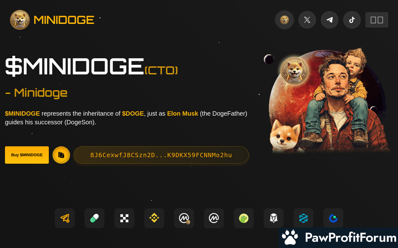 $MINIDOGE emerged as an extension of the Dogecoin ecosystem, marking a significant milestone on December 7, 2024, when Elon Musk shared a symbolic image on social media depicting "DogeFather" carrying "DogeSon," illustrating the legacy relationship between Dogecoin and $MINIDOGE. The project implements a community-driven governance model, utilizing smart contracts to enable token holders' participation in decision-making processes. $MINIDOGE's tokenomics structure incorporates features designed to encourage long-term holding and sustainable development. The project's roadmap focuses on two key dimensions: community building and technical innovation. On the community level, it continuously expands participation and establishes strategic partnerships; on the technical front, it consistently improves infrastructure to enhance project utility. While maintaining the cultural characteristics of meme coins, $MINIDOGE emphasizes implementing rigorous technical and economic fundamentals. Through community-driven innovation, the project is dedicated to creating lasting value for token holders and promoting the healthy development of the entire ecosystem.