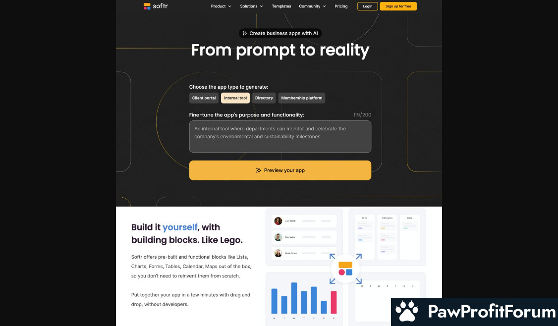Softr AI is an application generator tool that makes the process of building an app simpler. The tool is designed for all types of businesses, including developers and marketers. It also has a drag-and-drop interface that makes it easy for anyone to use.