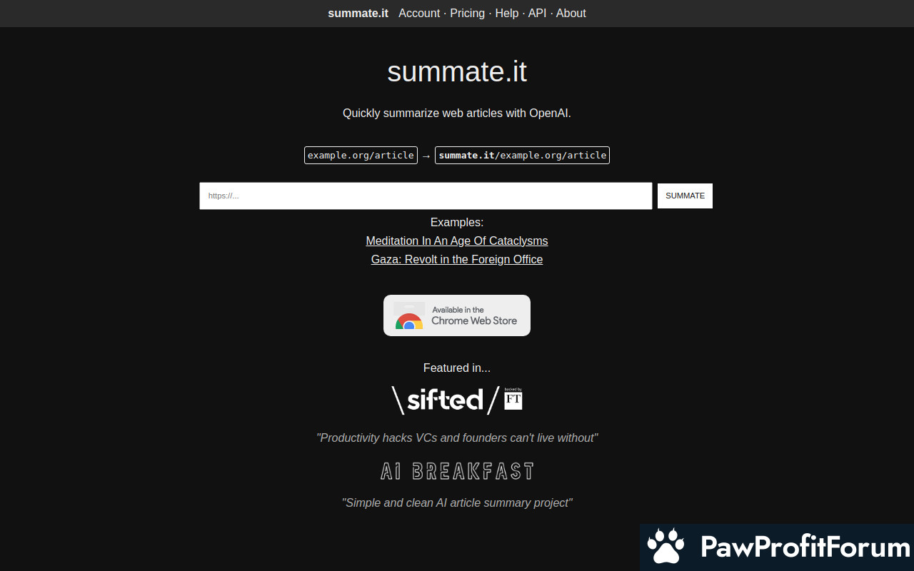 Summate.it operates as a web-based service that allows users to summarize articles by simply providing the URL. The platform's AI algorithms then analyze the content and generate a summary, highlighting the key points and essential information. This process enables users to quickly understand the main themes and arguments of an article without having to read the entire piece. The platform is designed to be user-friendly, ensuring that individuals with varying levels of technical expertise can easily utilize its features.