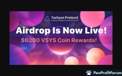 Tachyon Protocol Airdrop is worth up to 22 VSYS tokens (~$ 1.55) to the first 4,000 participants. The Tachyon Protocol Airdrop is supported by V Systems.